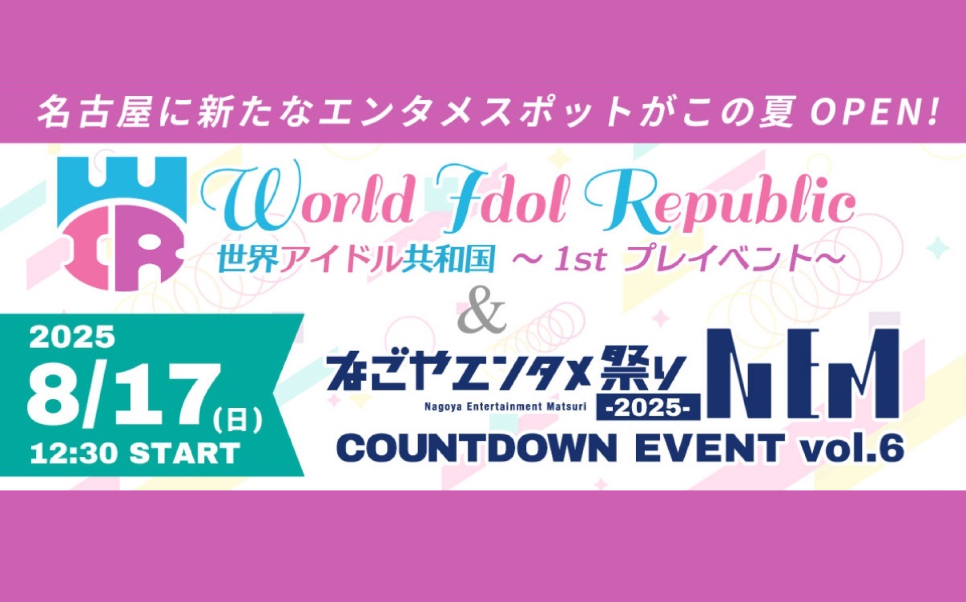 新しい名古屋のエンタメスポットとしてオープンする夢の世界の始まりです。『世界アイドル共和国』〜WORLD IDOL REPUBLICプレイベント&『なごやエンタメ祭りCOUNTDOWN EVENT vol.6』 を開催 !